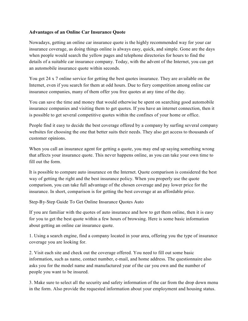 Advantages Of An Online Car Insurance Quote Vehicle Insurance