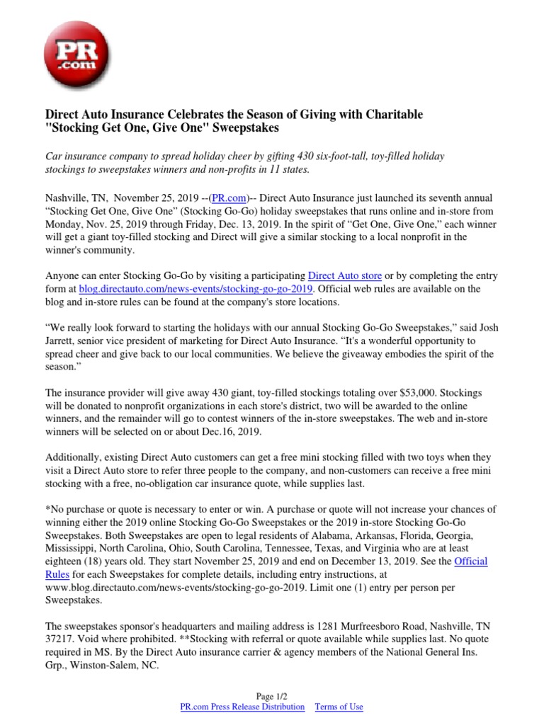 Direct Auto Insurance Celebrates The Season Of Giving With